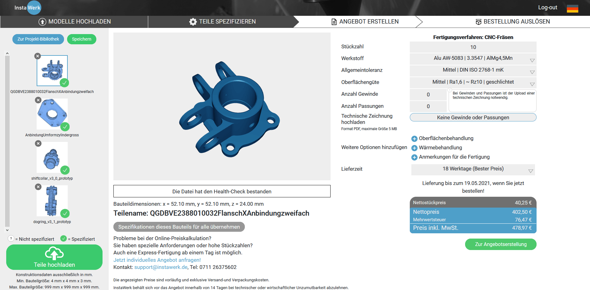 Wieviel würde Ihr CNC-gefrästes Maschinenteil kosten? Laden Sie es einfach in unseren Online-Konfigurator und sehen Sie sofort den Preis.